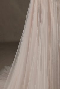 This gown radiates an air of ethereal enchantment and bohemian grace, designed for the bride who envisions a fairytale celebration in a sun-drenched garden or an elegant forest setting. It evokes a sense of light-as-air movement, where the layered tulle catches the breeze to create a mesmerizing, dreamlike silhouette. The Eliana perfectly balances couture-inspired craftsmanship with an approachable, romantic aesthetic, making it a must-have statement piece for any curated bridal gallery looking to captivate the modern romantic.”