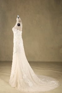 Exuding an air of understated opulence and classic grace, this gown is designed for the bride who desires a look that is both high-fashion and eternally romantic. It evokes the atmosphere of a sun-drenched coastal estate or a grand historic ballroom, where the subtle sparkle of the fabric mirrors the joy of the occasion. The Genevieve captures the essence of “”polished glamour,”” offering a refined, red-carpet-ready silhouette that ensures the bride remains the luminous center of attention from the first step down the aisle to the final dance.”